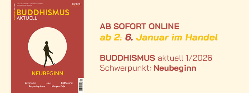 LEIDER VERZÖGERT SICH DER ERSTVERKAUFSTAG. Tut uns leid. Ihr könnt die Zeitschrift ab dem 6. Januar im Handel erwerben! In ihrem Editorial reflektiert Susanne Billig über den Gedanken des Neubeginns aus buddhistischer Perspektive. Neubeginn bedeute nicht, immer wieder bei null anzufangen, sondern sich mit all den Prägungen, Erfahrungen und dem Gelernten immer wieder neu zu öffnen und die eigene Perspektive bewusst zu verschieben. Sie beschreibt, wie sehr menschliches Denken,... → mehr