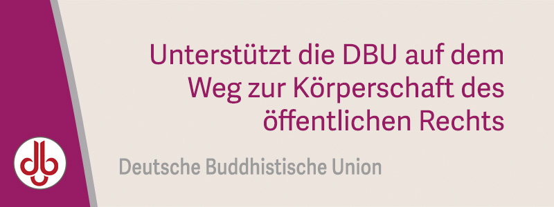 Die Deutsche Buddhistische Union ist seit vielen Jahren auf dem Weg, den Status einer Körperschaft des öffentlichen Rechts (KdöR) zu erlangen. Dieser Weg war lang, anspruchsvoll und von intensiver inhaltlicher Arbeit geprägt. Nun stehen wir an einem entscheidenden Punkt: Wir wollen und können diesen begonnenen Antragsweg erfolgreich finalisieren. Um dies zu ermöglichen und gemeinsam einen Meilenstein für den Buddhismus in Deutschland zu setzen, bitten wir euch... → mehr