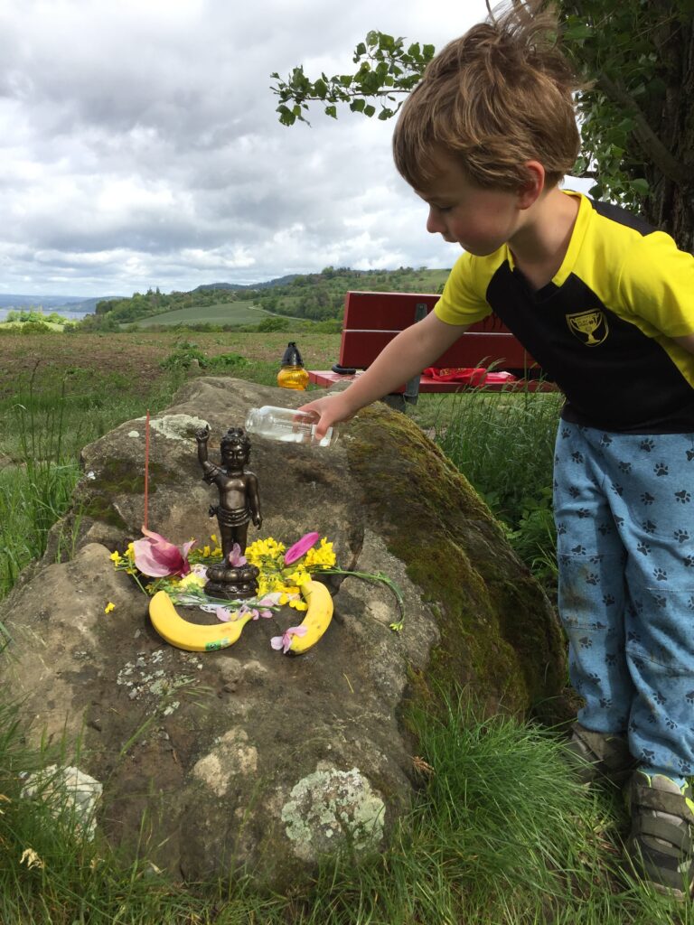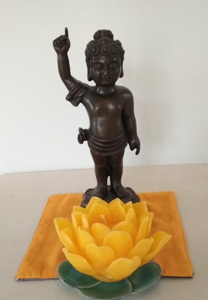 So verschieden die Wege des Buddhismus sind, so vielfältig sind auch die Formen, Vesakh zu feiern. In Sri Lanka leuchten in dieser Zeit Vesakh-Laternen an den Häusern und in den Straßen. In Regionen des tibetischen Buddhismus werden Butterlampen entzündet, und in stillen wie festlichen Momenten bittet man um Segen und heilsame Ausrichtung. Gleichzeitig ist Vesakh vielerorts auch ein Fest der Gemeinschaft: Familien kommen zusammen, teilen Mahlzeiten und pflegen ein Gefühl der Verbundenheit. In China, Taiwan und Hongkong gehört das Ritual des Buddha-Bades zu den bekannten Vesakh-Traditionen. Dabei wird duftendes Wasser oder Tee über die Statue eines Buddhababys gegossen – als symbolische Reinigung und als Ausdruck von Achtsamkeit und Hingabe. Rezitationen, Lichter und vegetarische Opfergaben begleiten das Ritual. Auch in unseren buddhistischen Gemeinschaften wird Vesakh auf unterschiedliche Weise begangen. Manche feiern öffentlich, etwa auf Vesakh-Festen in München oder Frankfurt. Andere treffen sich im kleineren Rahmen: zur Meditation, zu Pujas, zum gemeinsamen stillen Verweilen. Und in manchen Gruppen hat sich ebenfalls das Buddha-Bad etabliert – als berührendes Ritual, das verbindet und erinnert.